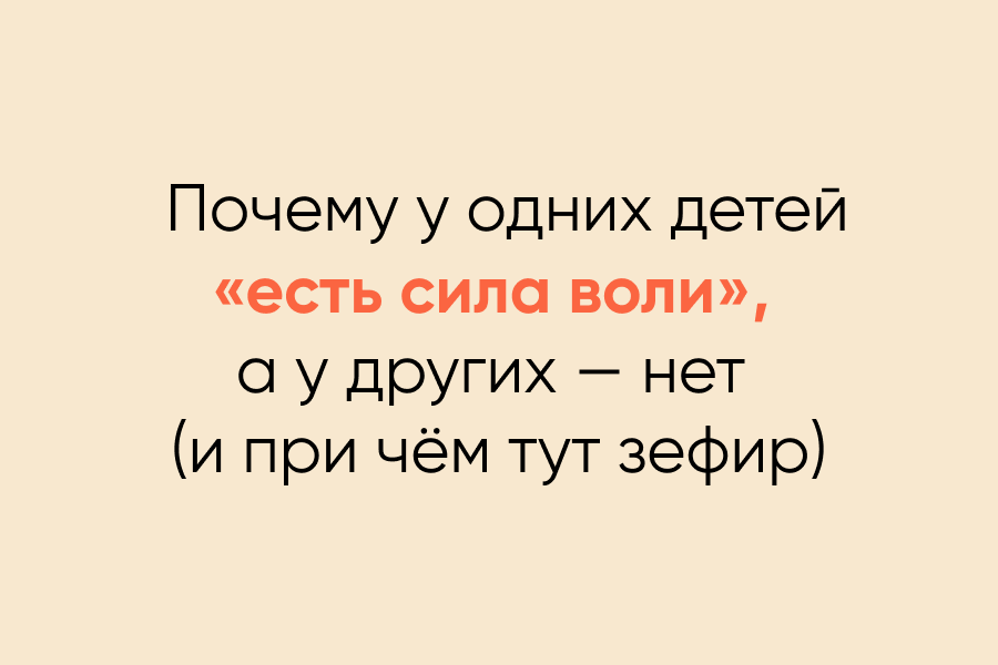 Наша с вами задача — сделать так, чтобы ребёнку было безопасно проявлять волю и откладывать удовольствие (отказываться от одной зефирки ради двух в будущем).