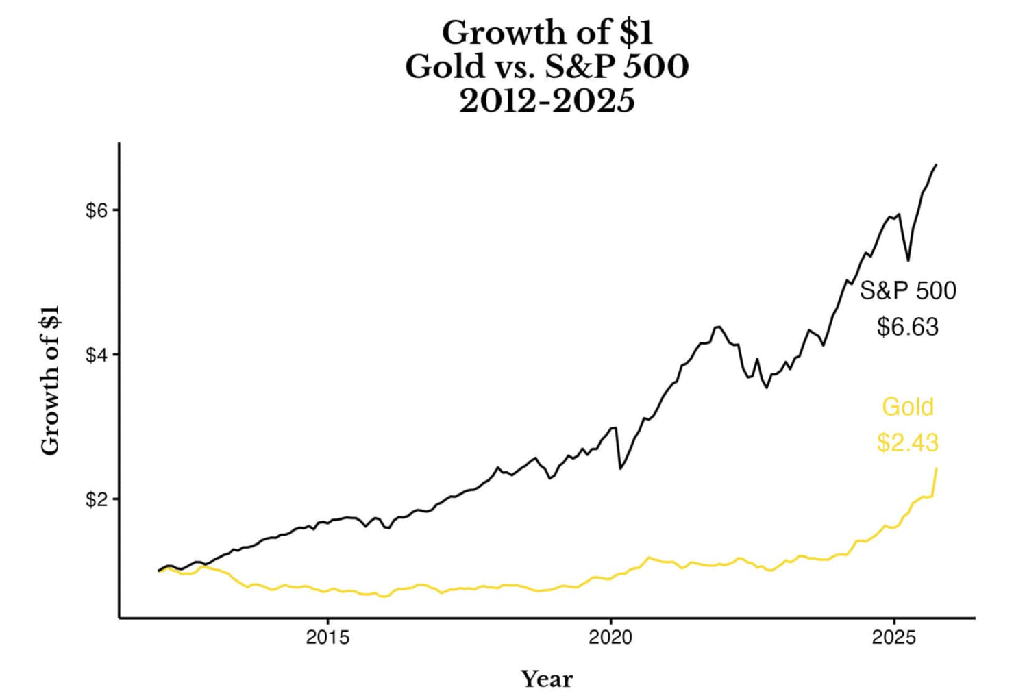 Если вы не следили за рынками и всё пропустили, знайте: золото с начала года выросло более чем на 50%, тогда как индекс S&P 500 (с дивидендами) прибавил около 18%. На фоне такого роста многие начали задумываться: а есть ли смысл вообще инвестировать в акции?