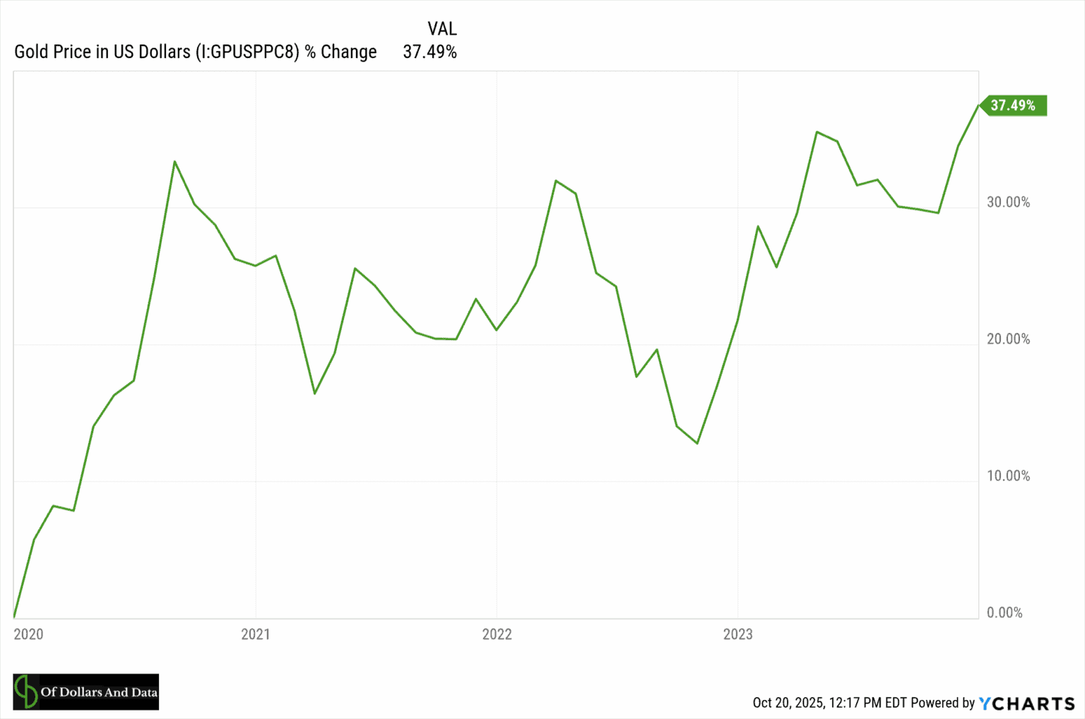 Даже во время последней волны инфляции, в 2022 году, золото почти не выросло в цене. Да, в 2020-м оно взлетело на 33%, но потом весь рост “сдулся”.